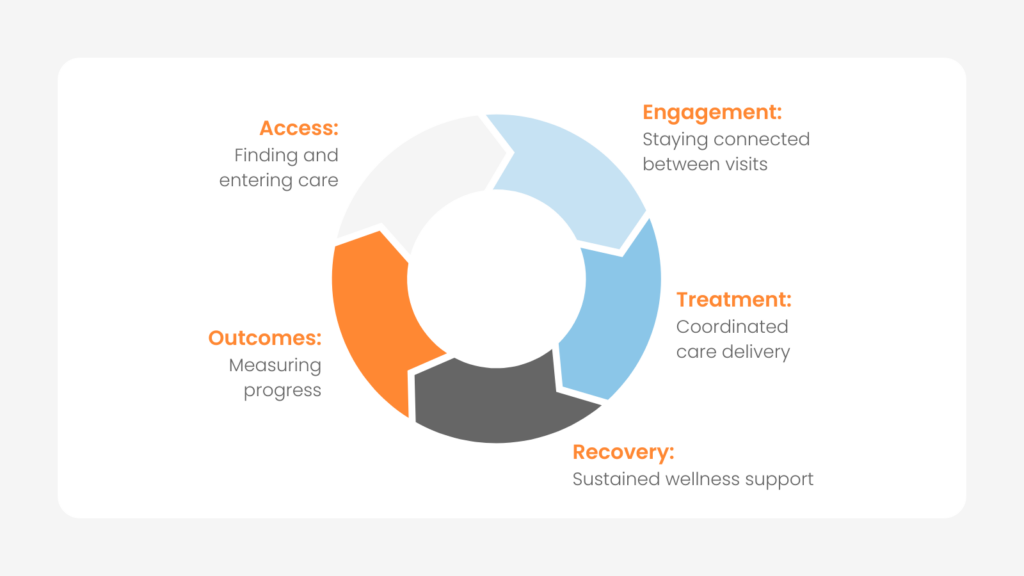 The key insight is that the behavioral health journey can’t be episodic. Digital tools can have the biggest impact when they smooth access, maintain connection, and reinforce engagement across the entire continuum of care.
